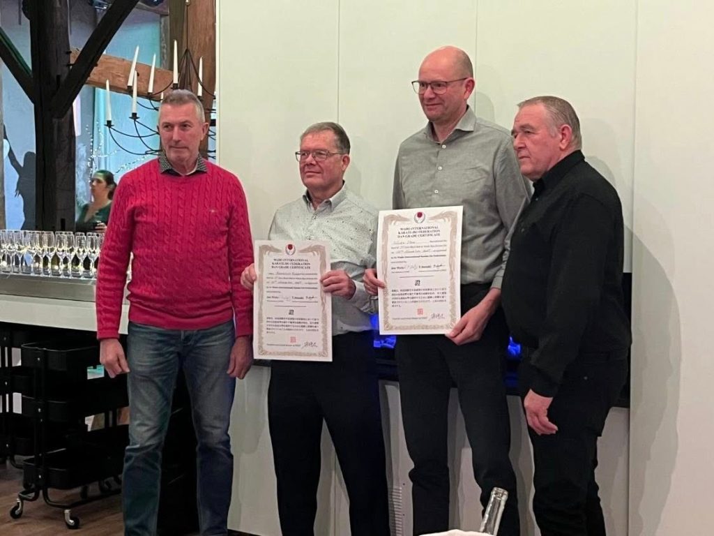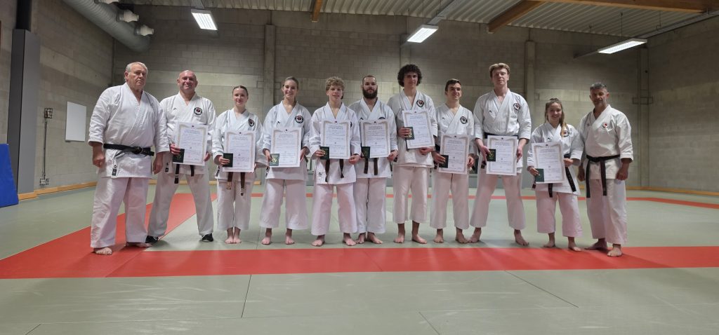 Na de trainingen van de WIKF-stage onder leiding van WIKF World Chief Instructor sensei Jon Wicks op zaterdag 22 november 2025 werd er een dangraadexamen afgenomen. Rik Lusthouwer en Gies Leynen slaagden voor 1e Dan, Jasper Jordens, Huib Fransen en Noor Beysen behaalden hun 2e Dan, Frank Van Der Heyden werd 3e Dan en Kelly Heynen behaalde de 6e Dan. Diezelfde avond kregen Richard van Boeckhold en Stan Weckx de 5e Dan toegekend. Proficiat!